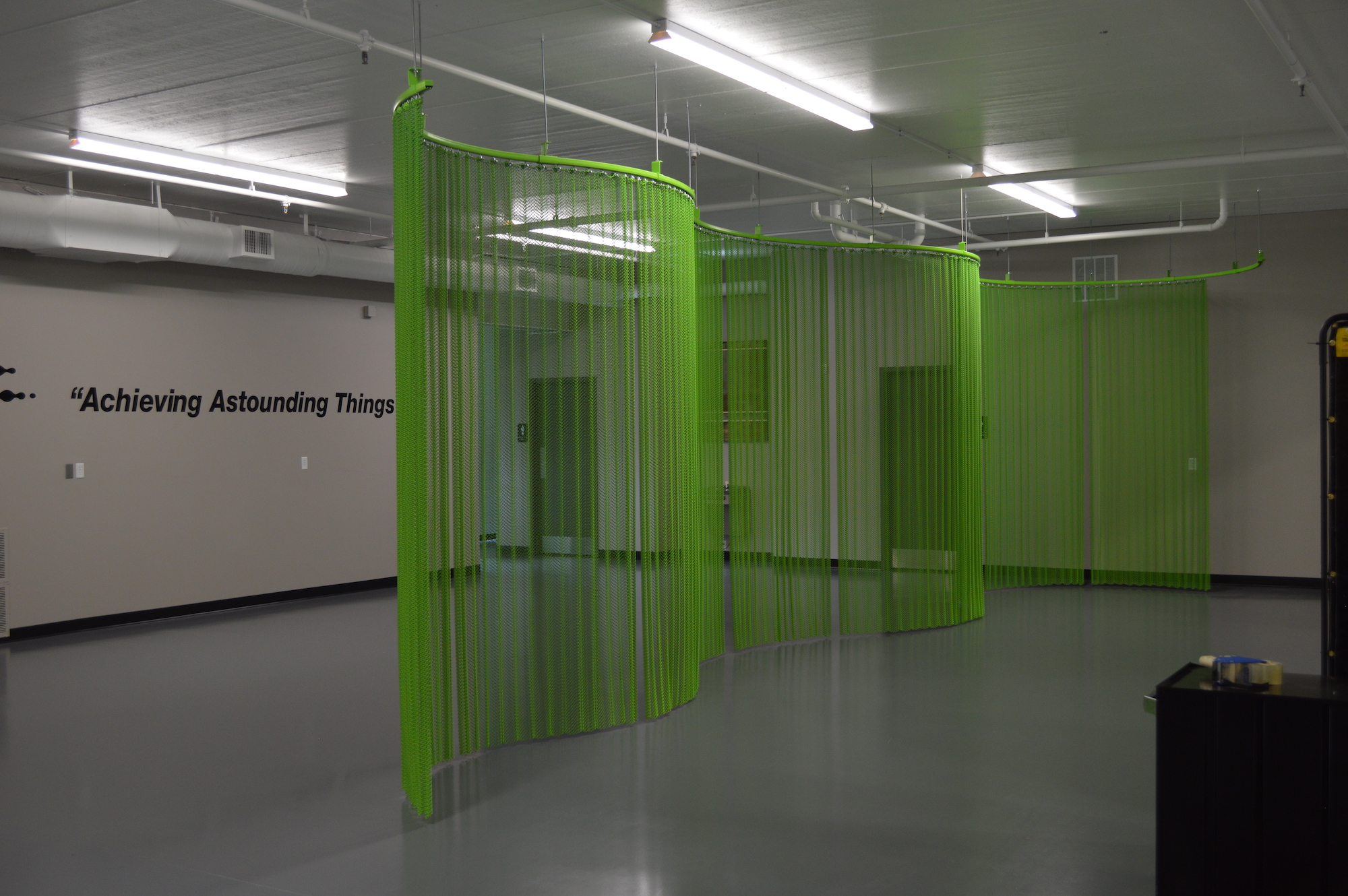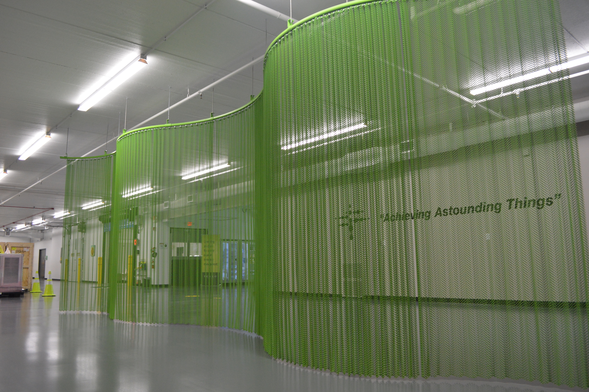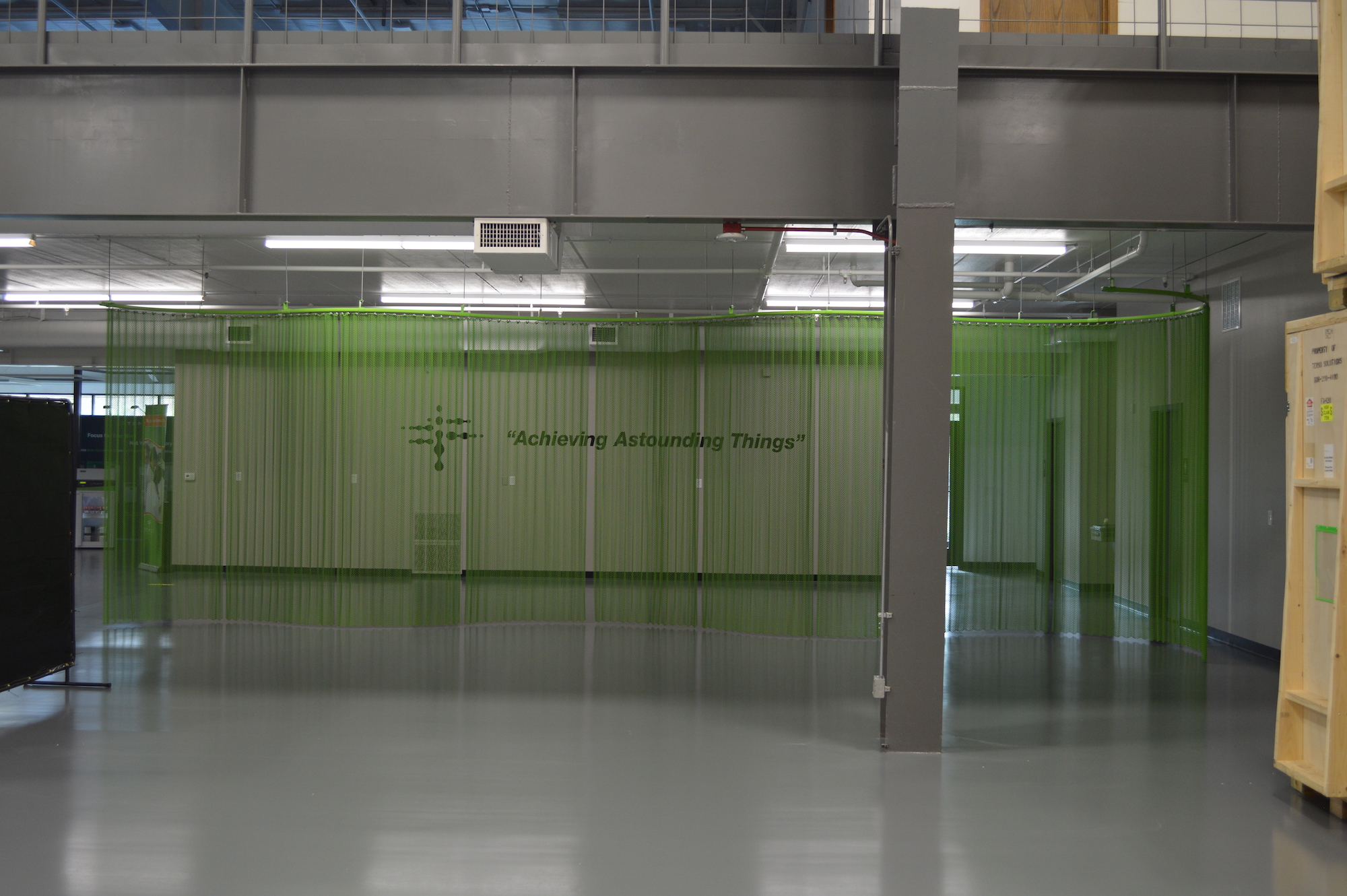 Cascade Architectural provided a 519" x 114" Fabricoil® coiled wire fabric curved partition for Terso Solutions’ new production facility near their headquarters in Madison, WI.