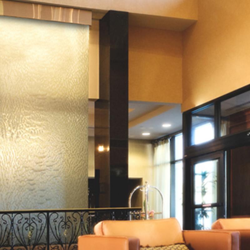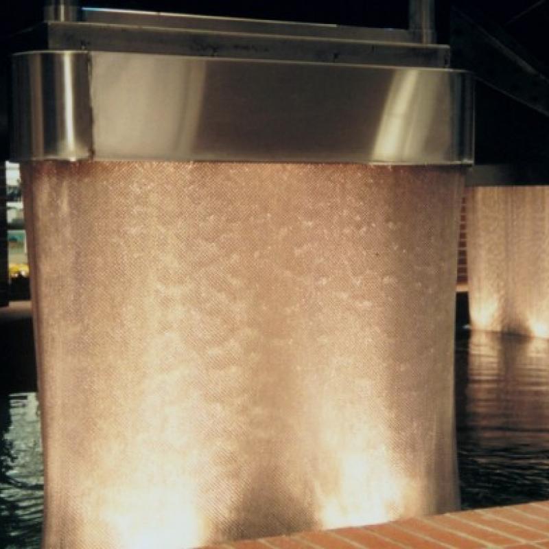 Water features, like artificial waterfalls or “walls of water,” can be achieved using coiled wire fabric systems – used as an interior or exterior design element for businesses, hotels, spas, luxury homes and more. These affordable, high-quality water walls achieve a glass-like appearance and can be paired with lights for a truly stunning visual.