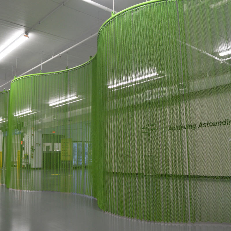 Securing Spaces with Coiled Wire Fabric, Partitioning Spaces, Solar Shading, Light Diffusion & Daylighting , Decorative, Area Reduction