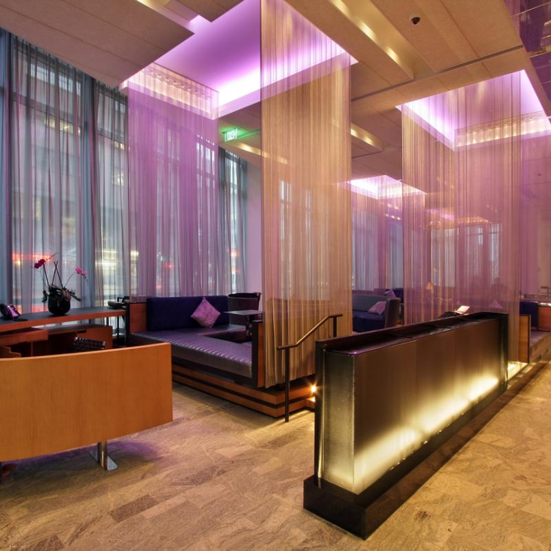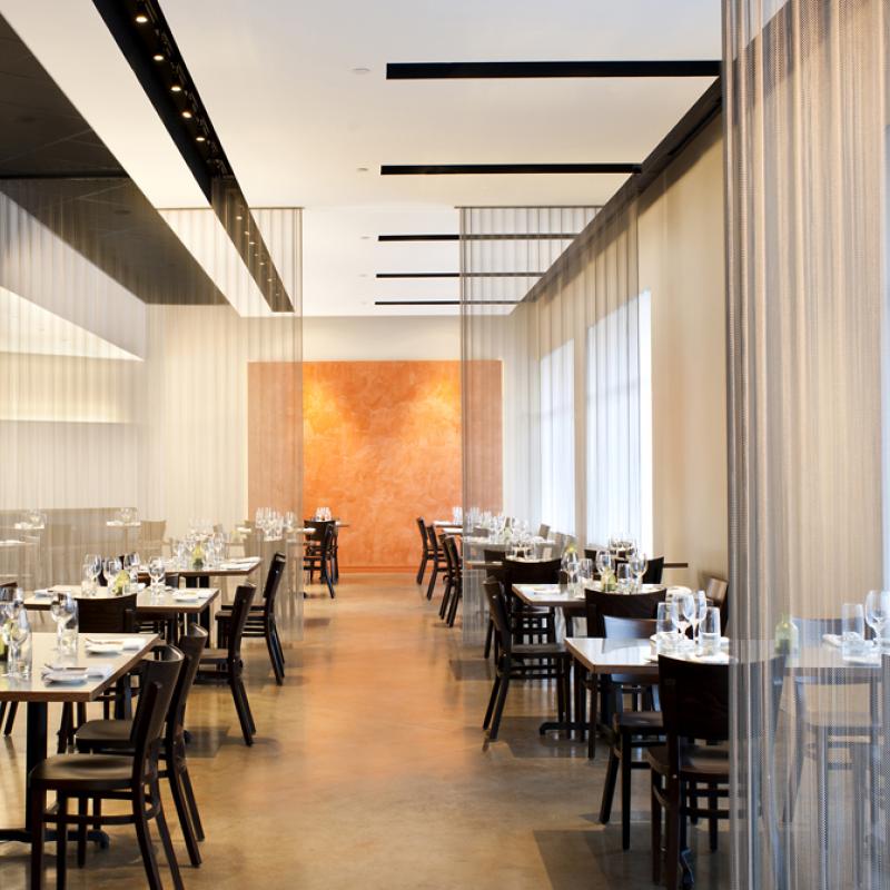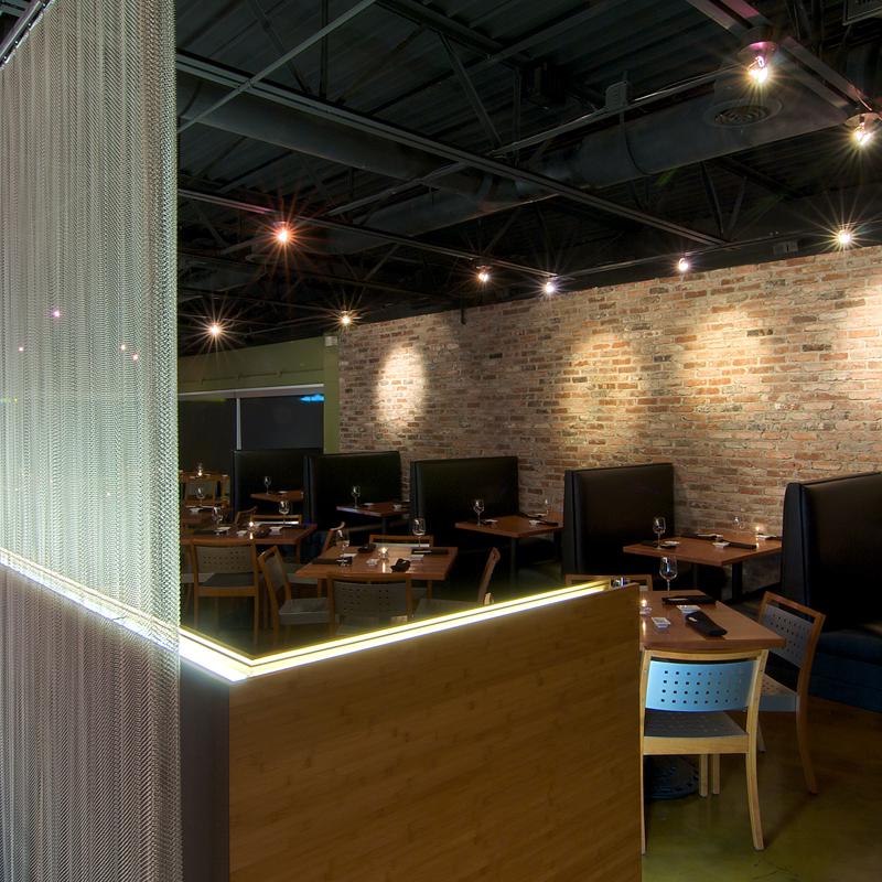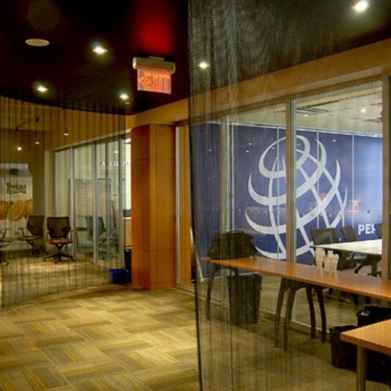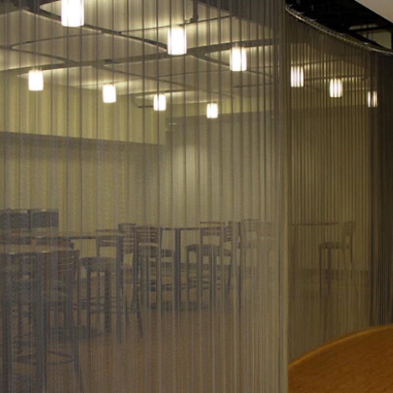 Cascade Coil systems may be specified for partitions in offices, hotels, schools, restaurants and more. Innovative coiled wire fabric systems divide spaces while uniquely offering visibility, plus an aesthetic touch unattainable with traditional solid partitions. Operable coiled wire fabric partitions are perfect for high-traffic areas. Optioning for an operable attachment system, coiled wire partitions can either be left open and unsecured or pulled closed to seal off the open space.